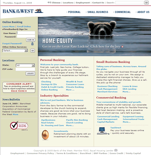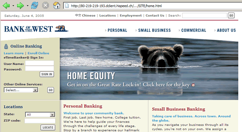 That one does not point to the official site but to some server not owned by the Bank of the West. See above for the correct address. |
