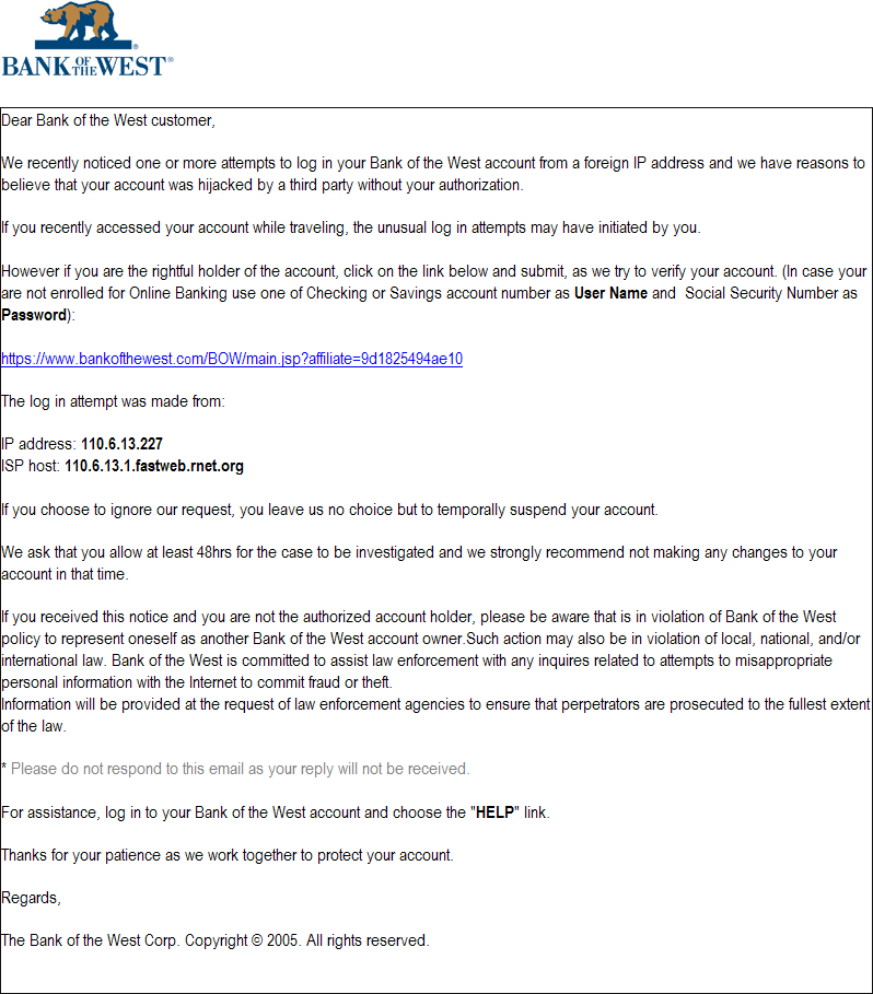 Doesn't this sounds rather plausible? To the experienced 'ear' NO IT DOESN'T, because a client conscious bank would never send an email like this. But to the unsuspecting, law abiding, inexperienced nettizen it might look as a legitimate request. The phishermen use your fear for having your account emptied or at least suspended. So what do you do? Click on the link of course! You'll type in your account number, password and BINGO! The person watching at the other side is now a rich person.