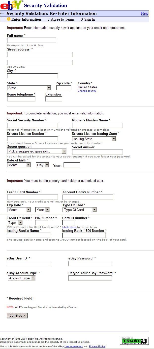 A fine example is shown below. Here someone requests that you fill out all personal data, pincode et cetera. You must be pretty naive to fill this form and send it back. The next thing you know is that your account is emptied, checks are written or some crook has done some lavish shopping with your account or credit card.