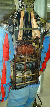 Shown here is a wooden monk, apr 30 centimeters in height, with a crude lever and joints mechanism. The purpose of this puppet will remain guesswork, and how long it took to create it too. But with our contemporary tooling it would certainly take a few months to get this intricate machinery working. A scientist in historic tooling would probably give it a year, but to our opinion at least 2 years of trying and retrying. This proves that making automata still went on during the dark ages. (the above pictures are taken at the Deutsches Museum at Munich in Germany, and the statuette stands behind very thick glass, that's why you see some reflection in the pictures)