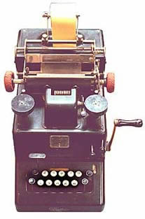 One of these types is shown above: the Brunsviga. Other makes are a.o. Odhner, Giessler, and Gauss; all build on the same principle: stepped gear. The machines are much more sophisticated then the original Odhner from 1904